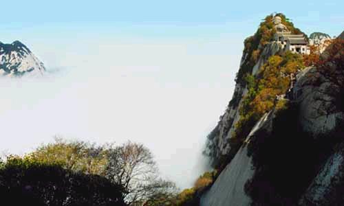 坐落在陕西省华阴县境内的华山,自古以来就以雄伟奇险闻名天下。最高峰海拔约2100米。这座山,处处是悬崖峭壁, 山路险峻,很多人去游华山,视为探险;也有不少人,慕名而来,但登到险处,胆战心惊,半途而返。华山之险是其特色,它的引人之处,也就在这个险字上。华山是我国五岳之一,称为西岳华山。