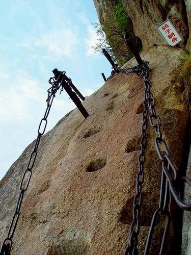 华山自古一条路: 华山还有一个特点,就是只有一条道路通往山上,因此有“华山自古一条路”的说法。当然,对于英勇的解放军战士、登山运动员和采药的农民来说,那又另当别论。
